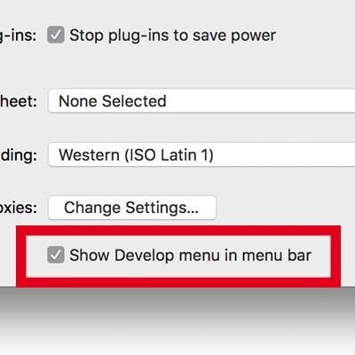 You can also enable a developer menu in Safari to enable several professional options. To display the developer menu: