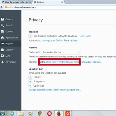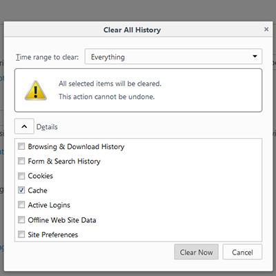 2. Delete the cache with the window option in Firefox